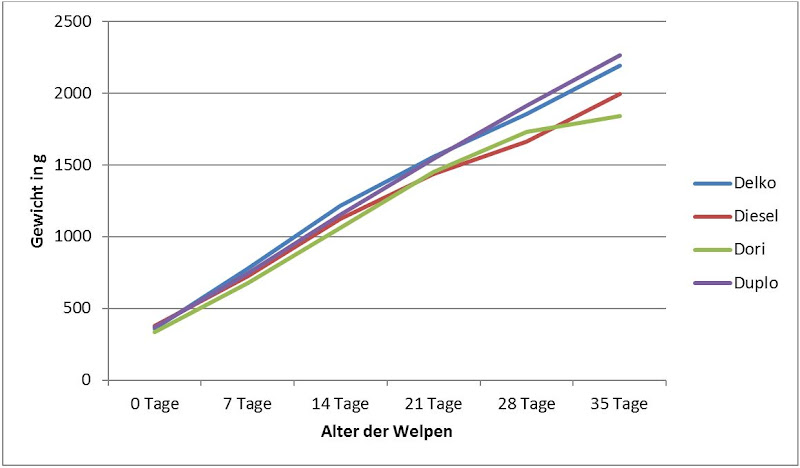Und es gibt eine neue Gewichtsgraphik. Diesel hat Dori wieder überholt. Bin sehr gespannt, wie das weiter geht und wie groß die Zwerge mal werden, wenn sie erwachsen. Super spannend dieses Mal :-)